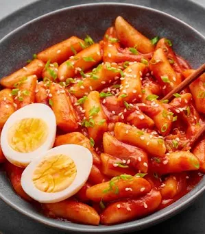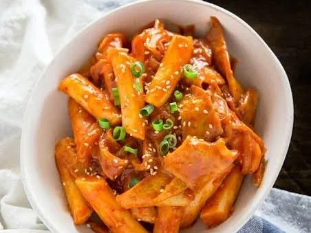 Makanan jalanan khas Korea Selatan ini terbuat dari kue beras (tteok) yang kenyal, dimasak dalam saus gochujang pedas manis yang khas.